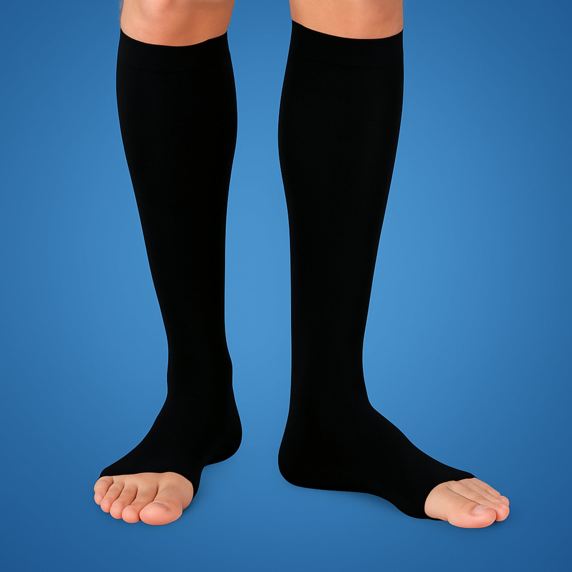 Ideales para todos aquellos que deben estar de pie o viajar mucho. Despídase de las molestias y dé la bienvenida a la comodidad con nuestras medias de compresión VenoFlex.